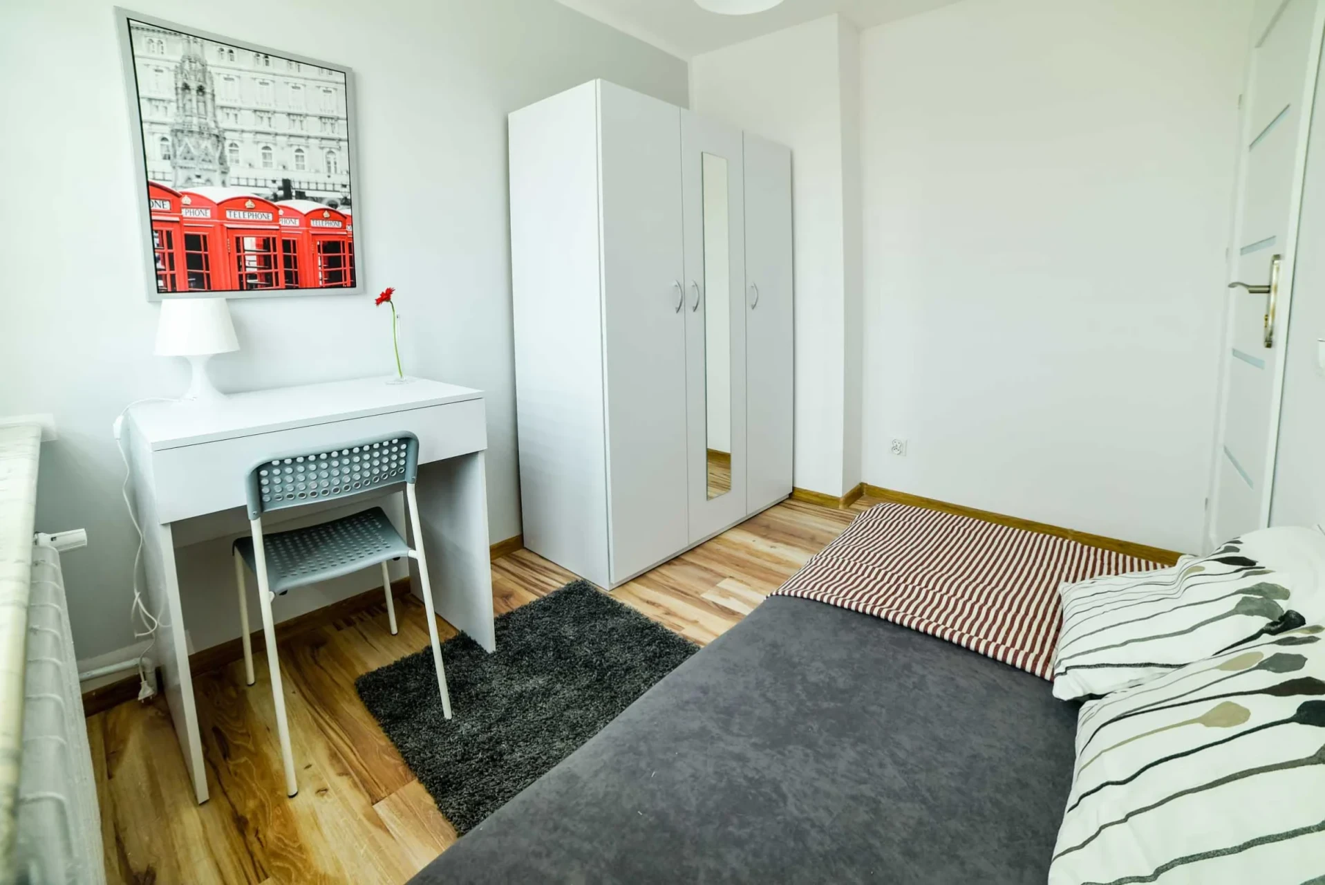 Lokal o powierzchni 80,80 m² został przystosowany pod wynajem pokoi – posiada 7 jednoosobowych pokoi, w pełni umeblowanych i zamykanych na klucz.